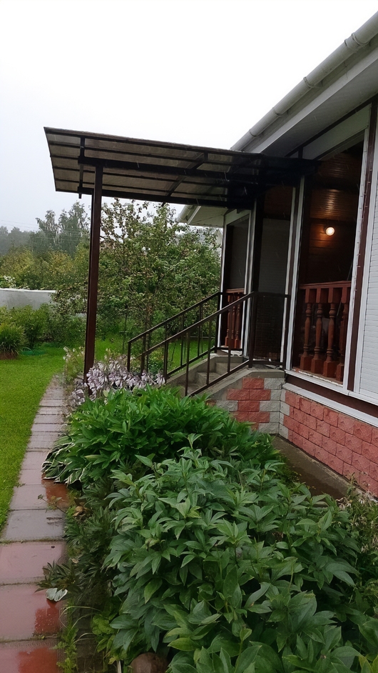 Навес-пристрой из профнастила над входом в дом Арт-737